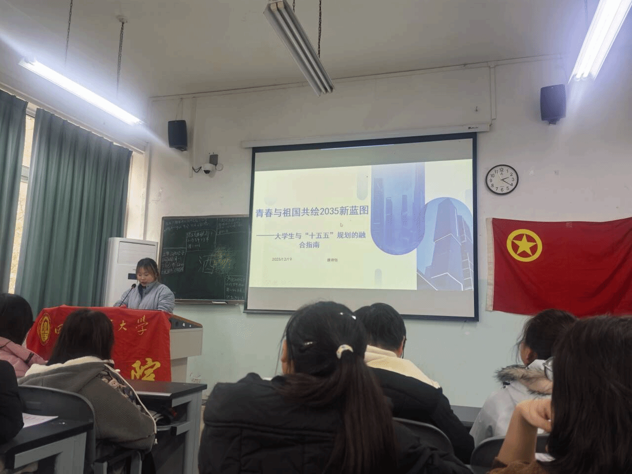 12月19日,xc体育第十一期团校第四讲暨第九期青马班第三讲在第一教学楼406教室开讲。唐诗怡老师主讲,学院各部门成员、团学骨干及青马班学员参与,旨在引导青年将个人成长与国家发展紧密对接。