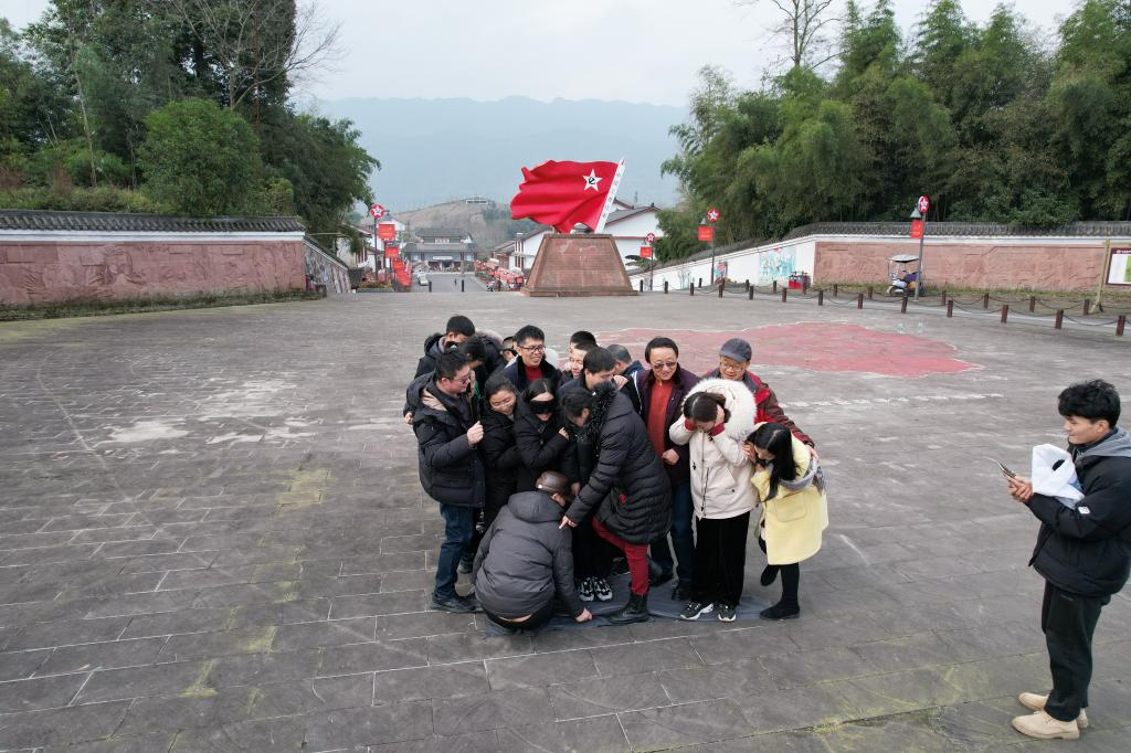 进入红军村,莫大的中国工农红军军旗惹人注目,老师们跟随讲解员的步伐,在红军村中健步,步行过程中,青山隐隐、绿水悠悠,徜徉于青砖黛瓦、绿水青山之间,游走在冬天的风景里聆听党史,在行走中感受红色文化。
