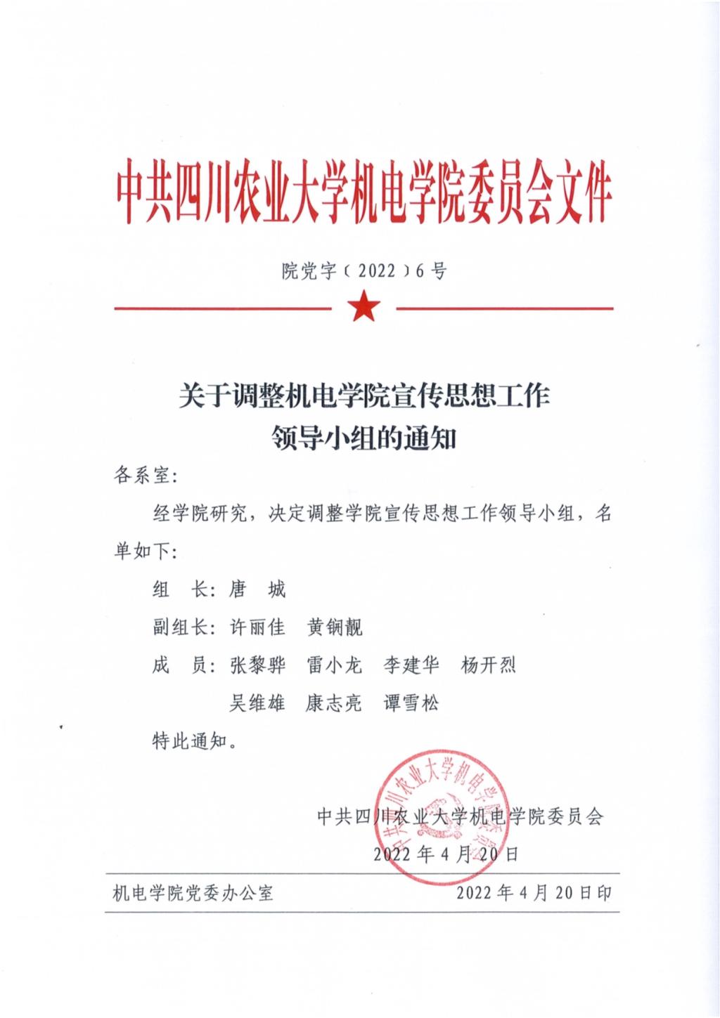 公司党字[2022]6号-关于调整xc体育宣传思想工作领导小组的通知